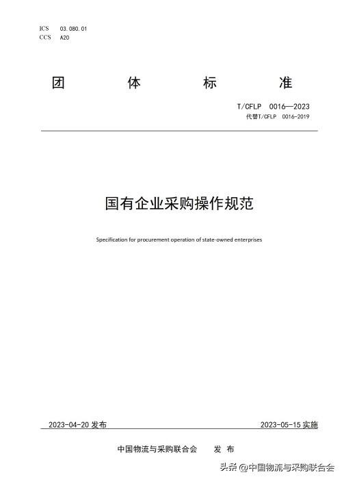 《国有企业采购操作规范》(修订版)团体标准由中国物流与采购联合会公共采购分会牵头编制,中国物流与采购联合会团体标准化技术委员会归口,共60余家企业参与修编。标准修编工作前后耗时逾2年。《国有企业采购操作规范》(修订版)2023年4月20日发布,自2023年5月15日起实施。