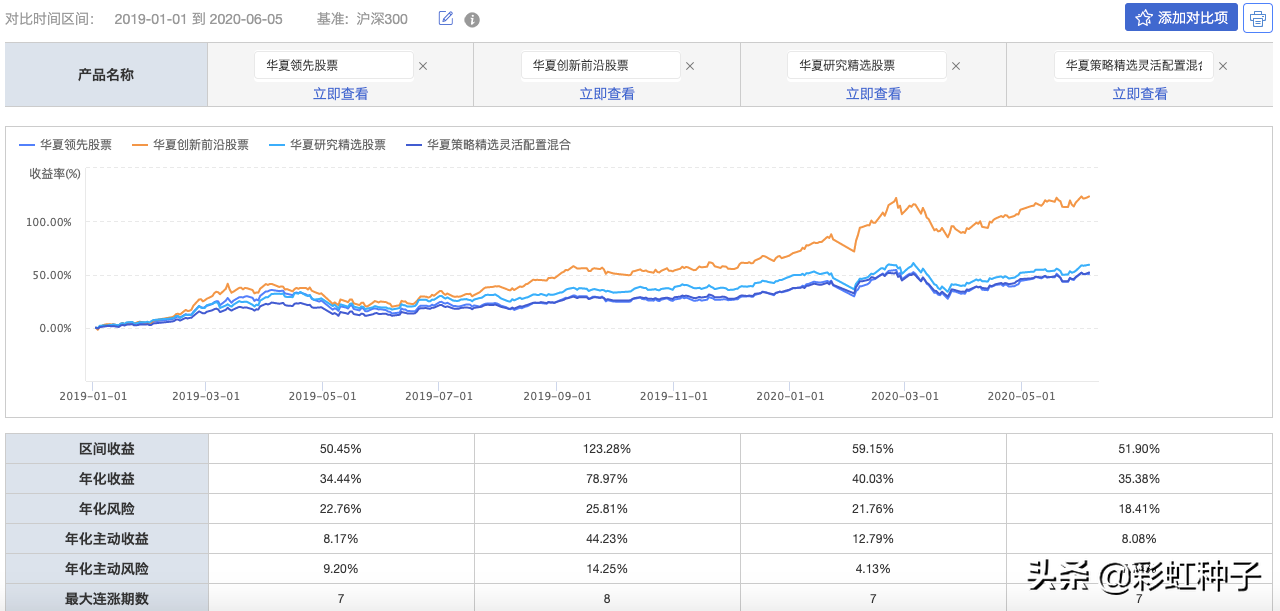 另外,有一点值得一提,林晶女士目前管理了4只产品,其中3只一致性比较强,有一只华夏创新前沿就比较奇特了,大幅跑赢了其他3只。