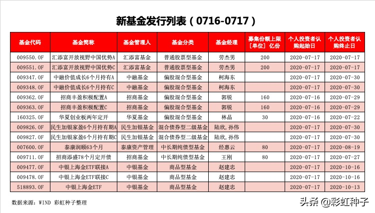 总的来说,彩虹种子还是比较看好郭锐先生的。不过,这只产品的募集份额上限是160亿元,我不清楚最终募集的情况是怎么样的,如果直接到160亿的话,郭锐先生的管理规模将直接从20亿一下子到180亿,9倍的规模增长,那么建议就不要参与了。