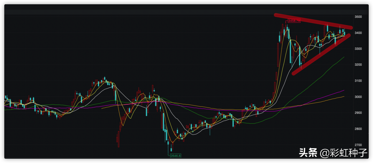 这根阴线还是非常瞩目的,将近7个点,高位放量长阴线。从技术分析上基本预示着之前连续快速上涨的中止,好的情况是盘一盘,不好的情况就向下一段(技术分析纯属瞎猜,不供参考,哈哈哈)。