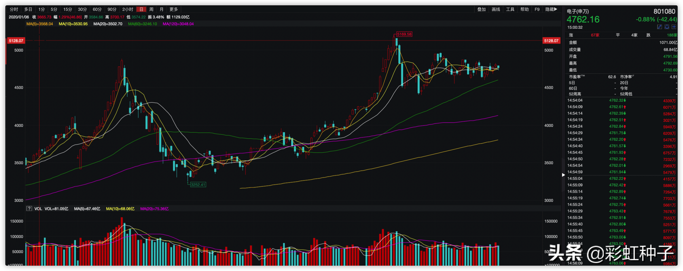这个是前一段时间提示过的电子板块,已经盘了快2个月了。