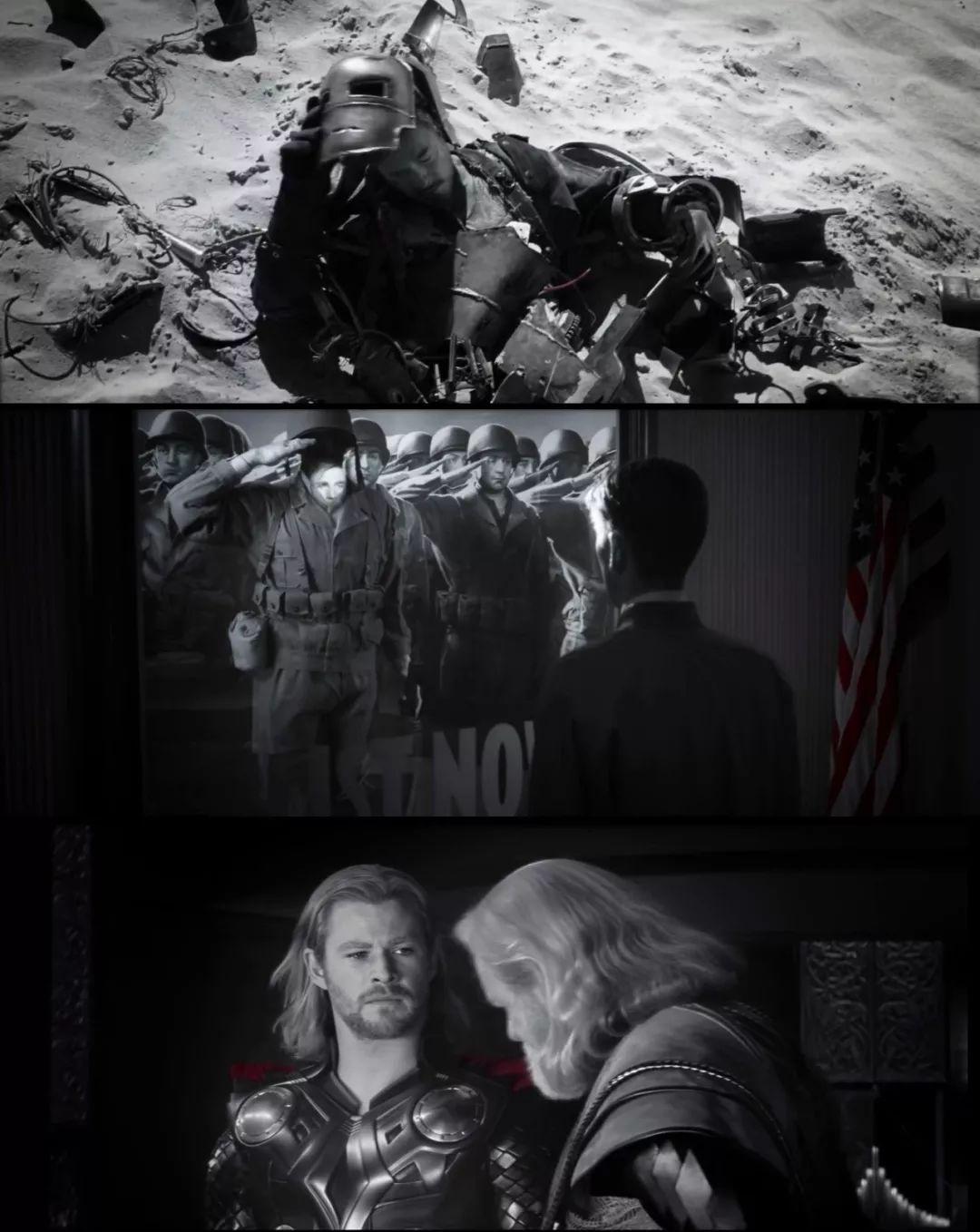 在这里不得不说,《复联4》不光做到剧情和台词上,致敬了漫威宇宙前面的作品,就连影片本身,也做了很多的前后呼应。