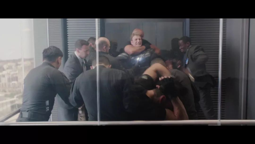 美队进入九头蛇团伙电梯时,这个场景也致敬了《美队2》中,有一场电梯擒拿美队的戏份,但导演自己做了反高潮处理,美队直接来了句“九头蛇万岁”,搞得电梯的人一脸懵内个啥。