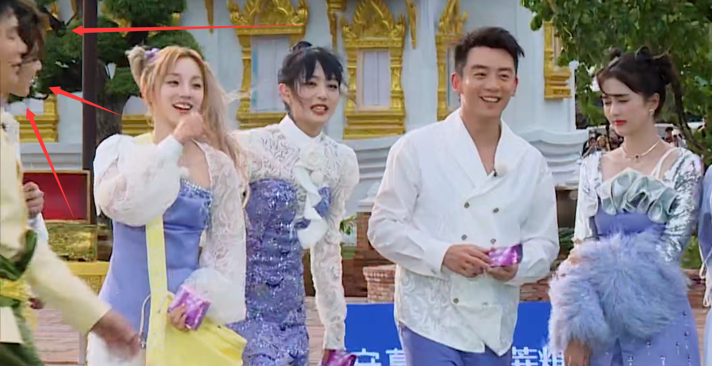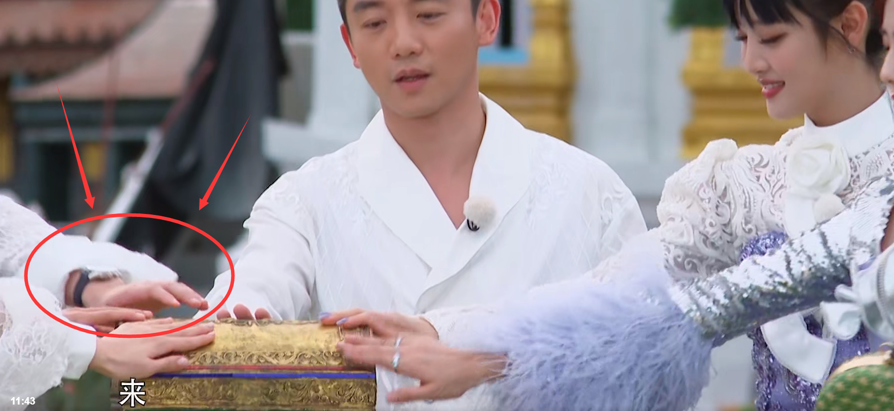 比 如 , 5 个 人 却 有 6 只 手 , 画 面 左 侧 那 只 戴 手 表 的 手 , 就 来 自 于 蔡 徐 坤 。