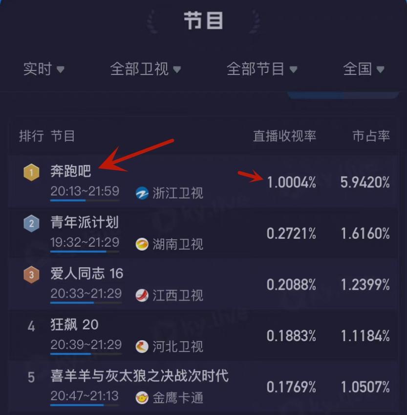 此 前 , 跑 男 的 直 播 收 视 率 一 直 在 0 . 4 左 右 , 现 在 直 接 破 1 , 也 算 没 有 浪 费 后 期 工 作 人 员 加 班 两 周 的 心 血 了 , 这 一 波 打 工 人 也 算 立 功 了 。