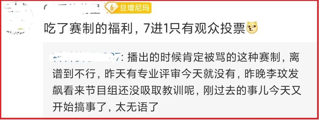 但是,在已经录制完毕的11进5下半场中,节目组再度受到了质疑和吐槽,因为拿到全国五强最后一个席位的是李荣浩战队的李楚楚,而且她和周菲戈上演了最后的决战。