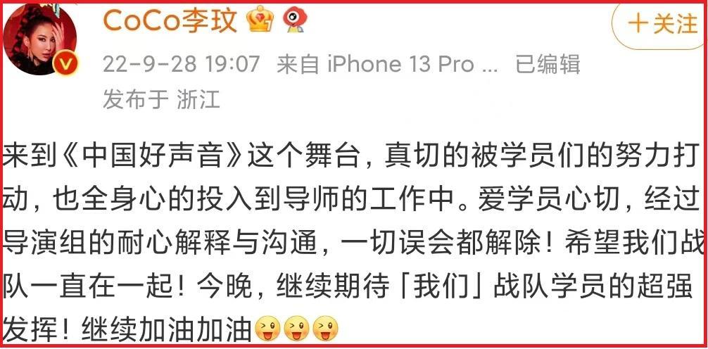 至此,李玟、周菲戈和《好声音2022》这场风波算是暂时告一段落。