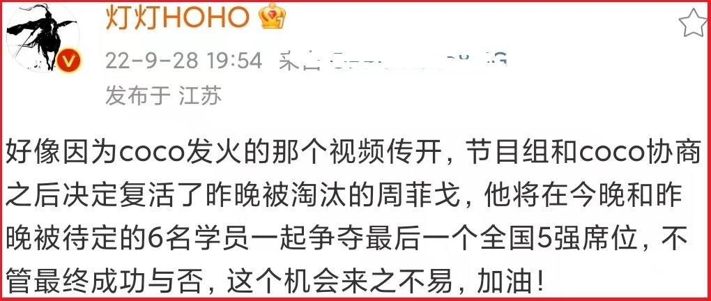随后,李玟发飙视频的首发者,即知名音乐博主“灯灯HOHO”爆料称迫于舆论压力,节目组貌似和李玟达成了和解,周菲戈复活,将参与9月28日晚间录制的11进5下半场,争夺最有一个五强席位。